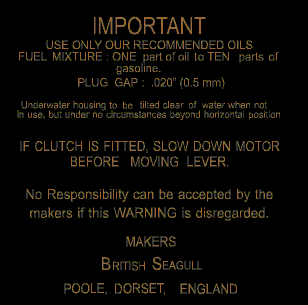 This British Seagull decal is not shown to scale and is a GIF format. This decal is shown as two but comes as a single apply with the name with logo 180 degrees to the starting & oiling. Black is the color of the tank. The decal is designed and produced from a high quality Vectored EPS image. All Decal Headquarters decals are true Water Slide Lacquered decals that will give a high quality finish to your product. All of our decals are made to be used as the originals were, on running working engines!