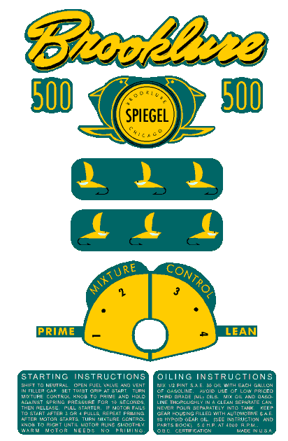Note that the decals are shown on green background and that two Brooklure names are included in the set shown. This is a eleven piece set.