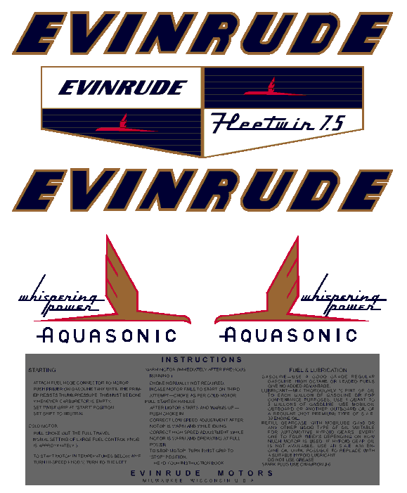 1955 Evinrude Fleetwin 7.5 HP, Aquasonic, Whispering Power.