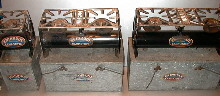 | "Prevent Fires!" is what the ads for the Evinrude Camp Stove's of the mid 20's read. The ads claimed the stove to be "As safe a buy as a key of ten-penny nails". The stoves came in diffrent sizes and each would fit neatly into its metal carrying container. The single burner was produce for three years starting in 1917. In 1920 the medium size two burner stove was introduced, and was manufactured through 1923. The larger two burner stove was then manufactured from 1924 through 1925, when evinrude stop making the stoves. | |||